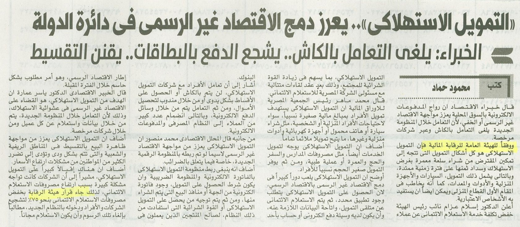 (( التمويل الاستهلاكى )) .. يعزز دمج الاقتصاد غير الرسمي في دائرة الدولة .