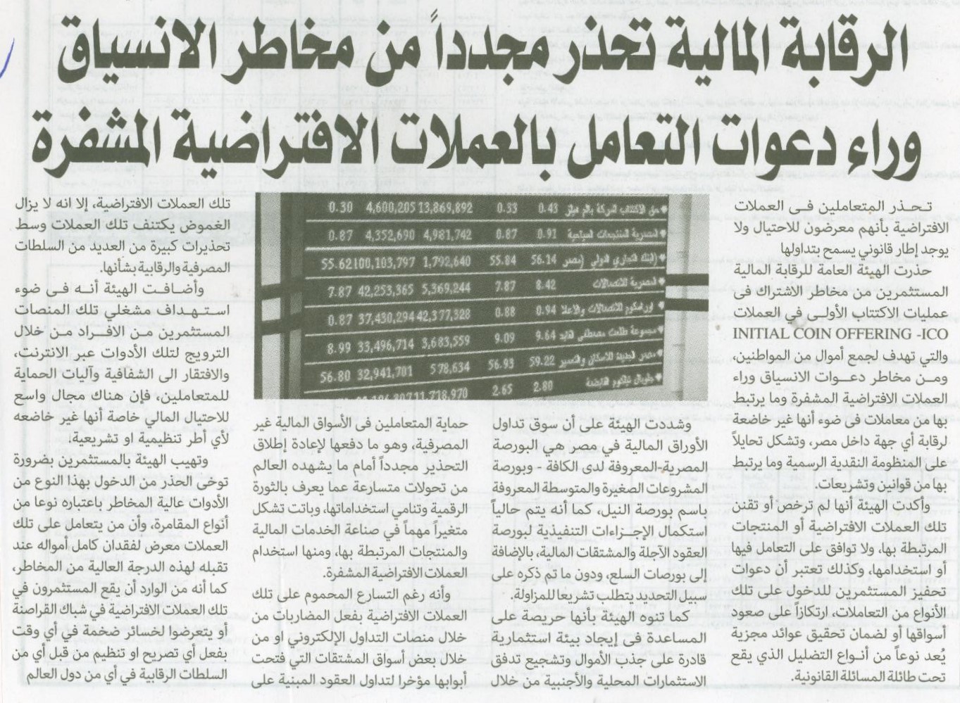 الرقابة المالية تحذر مجدداً من مخاطر الانسياق وراء دعوات التعامل بالعملات الافتراضية المشفرة .