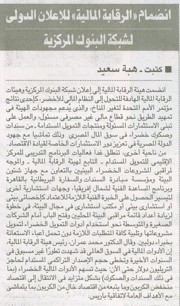 انضمام (( الرقابة المالية )) للإعلان الدولى لشبكة البنوك المركزية .