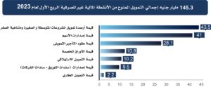أظهرت أحدث التقارير الصادرة من الهيئة العامة للرقابة المالية عن الفترة من ( يناير- مارس) لعام 2023 أن إجمالي التمويل الممنوح من خلال الجهات الخاضعة لرقابة الهيئة( أنشطة سوق رأس المال ، أنشطة التمويل غير المصرفي ) بلغت قيمتها 145.3 مليار جنيه وذلك على النحو التالي: